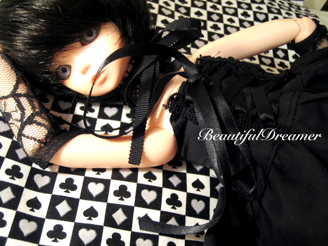ゴスメイクな美白っ子ズ、ジェロムを肌色・メイク違いで並べたら楽しいかなぁと思ったんですが(衣装も可愛いじゃねーかチックショー!)如何せん台所事情とか家族計画などで断念したのですが、魔法使いっ子、というのに突き動かされて普段は真っ黒服(というより黒ロリ服に?)はあんまり食指が動かないのですが突如として作りたくなったのでー。