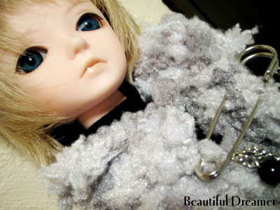 元々小鳥用のブラウスだった筈なのにな、コレ…。ちなみにこれも古着再利用の一環。超私の服。