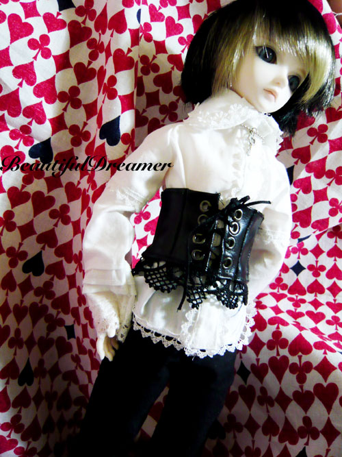 コルセットはうちに初TF(小鳥/メイ)が着た頃に作ったもの。ブラウスは去年秋口頃に茶のJSKと合わせて小鳥に着せていたもの。王子仕様っぽくしてみました。あ、パンツはSpecialの制服のです。